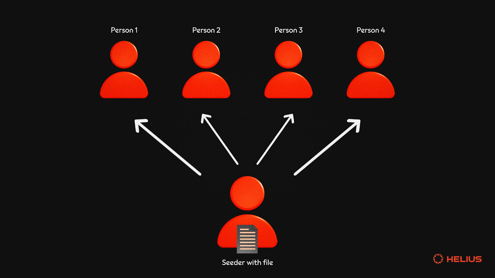 假设你想下载一部 4GB 的电影。网络上会有一些人已经在他们的计算机上保存了这部电影,他们被称为种子/种子用户。种子用户会首先创建一个包含相关信息的种子文件,如电影的名称、大小、位置和子文件,然后将这个种子文件上传到网络上。现在,假设有 4 个附近的用户也想下载这部电影。种子用户会将电影分成 4 个 1GB 的部分,并分别发送给每个用户。
