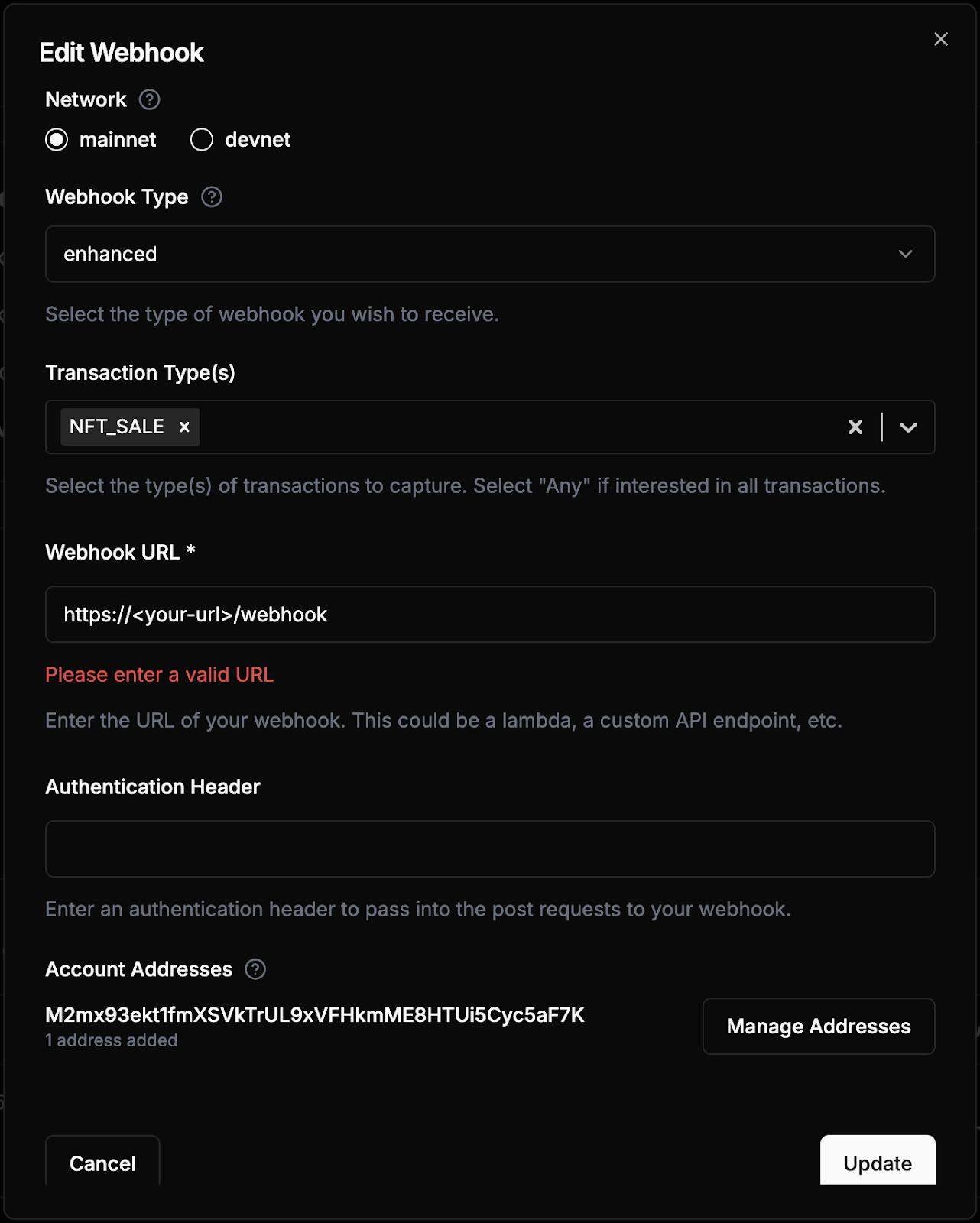 创建Webhook后,您可以在Helius仪表板中进一步自定义: