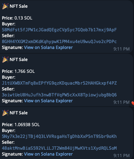 想实时了解Solana上的动态吗?本指南将向您展示如何创建一个Telegram机器人来追踪链上活动。我们将使用一个NFT销售追踪器作为示例,但我们构建的模板可以轻松适配于其他用途。