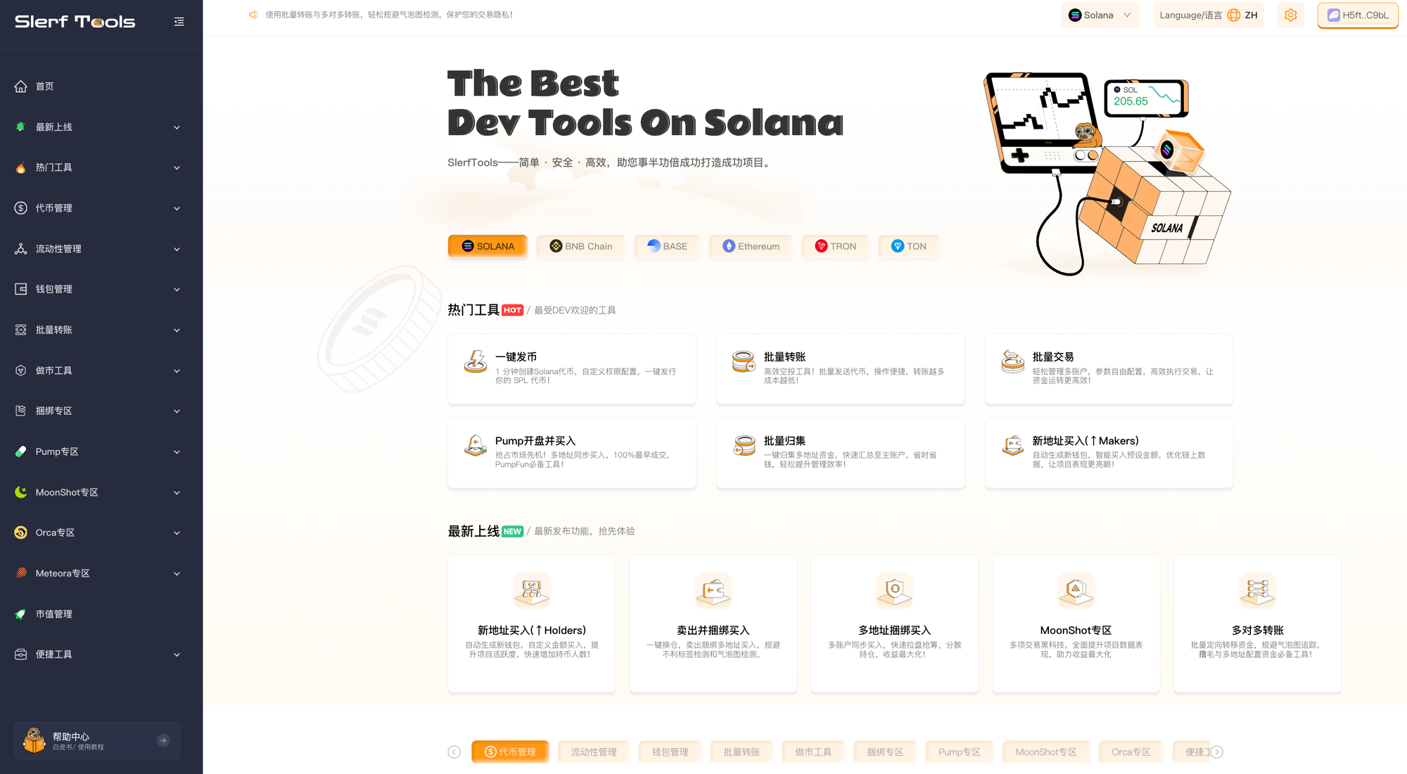 SlerfTools Solana 交易量工具 是一款强大的自动交易工具,适用于 项目方、交易者和流动性提供者,帮助提升代币 市场活跃度和可见性。该工具具备 强大的自动化能力、灵活的多钱包支持、反套利功能,能够在 保持交易真实性 的同时,有效增加市场交易量。